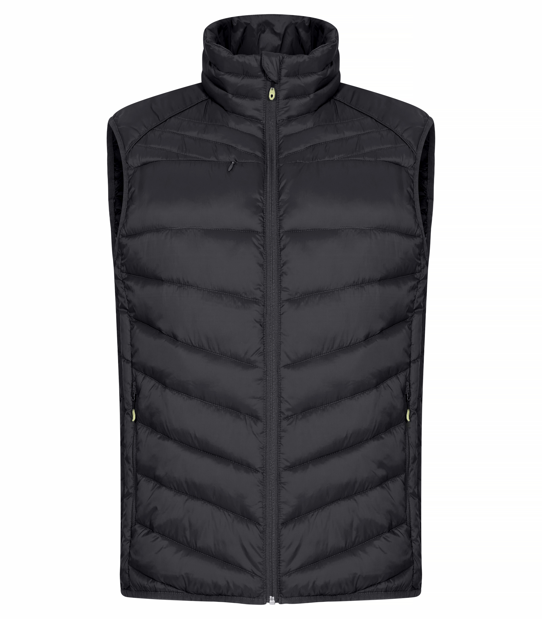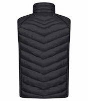 En varm och lätt väst med dunliknande vaddering. Tillverkad av 100% återvunnen polyamid. Tre ytterfickor med dragkedjor och två innerfickor. Elastisk kant nedtill och i ärmavslut. Juniormodellen har avtagbar huva. Jackan är utrustad med färgade zippuller, hörlurslösning samt dragkedja.